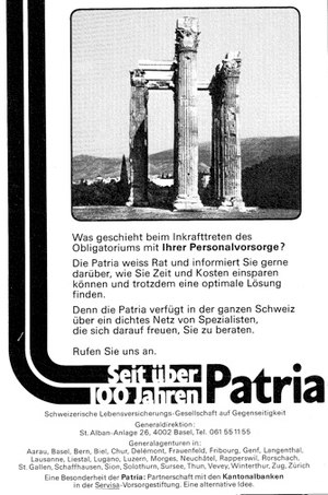 Literatur / Bibliographie / Bibliografia / References: Leimgruber Matthieu (2006), La politique sociale comme marché. Les assureurs vie et la structuration de la prévoyance vieillesse en Suisse (1890–1972), Studien und Quellen, 31, 109–139, Zürich; Lengwiler Martin (2013), Switzerland : insurance and the need to export, in Borscheid Peter, Viggo-Haueter Niels, World Insurance. The evolution of a global risk network, 143-166, Oxford. DHS / HLS / DSS: Assurances ; Mutuelles.